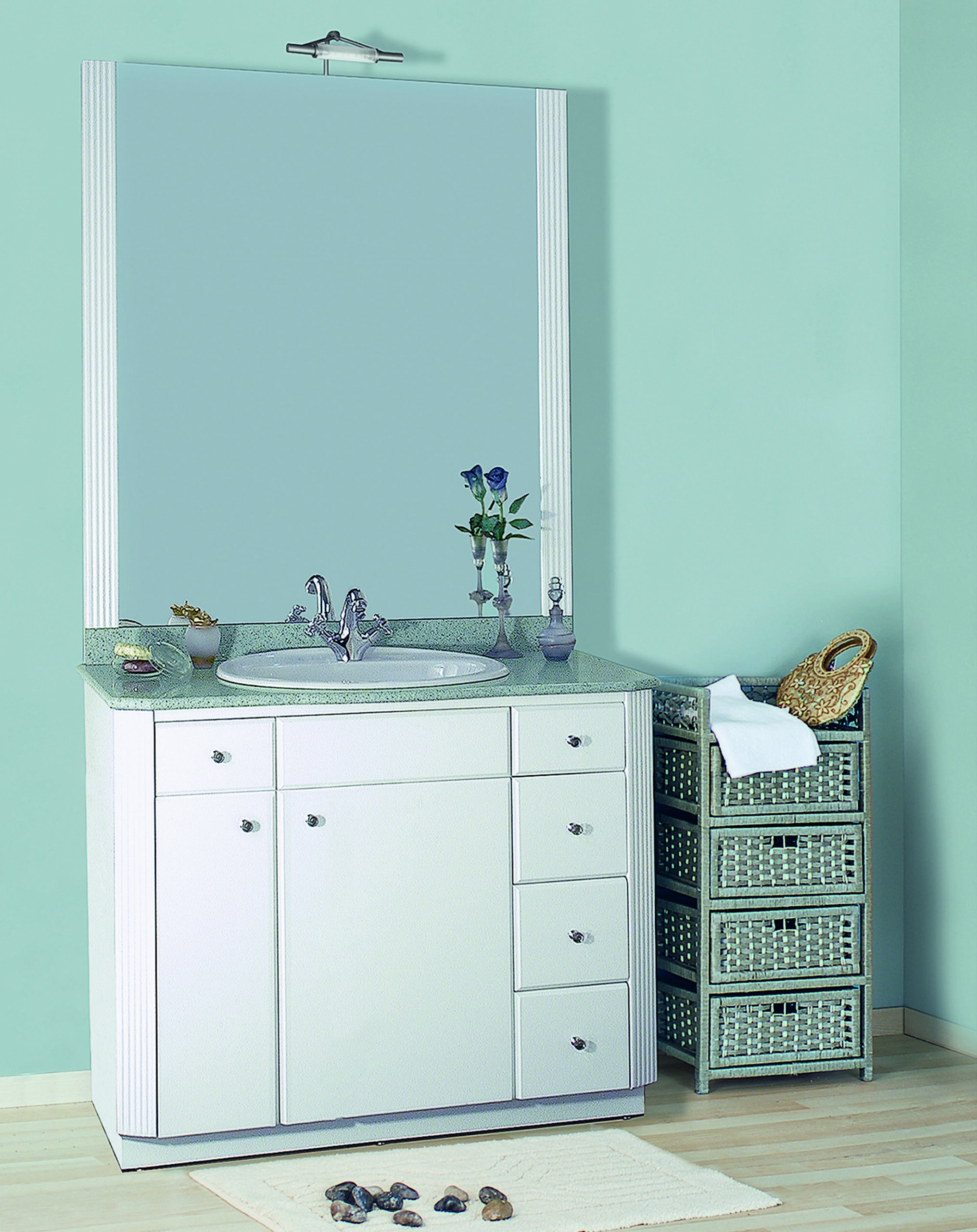 Un design arhitectural elegant, linii distincte, diversitate cromatică oferită de contrastul dintre blaturile de marmură şi mobilierul alb, toate aceste accente caracterizează mobilierul de baie VENEZIA. O colecţie cu distincţie şi stil. Oglinda de proporţii mari conferă oricărui spaţiu o imagine amplă şi elegantă iar accesoriile de cristal dau o notă de fineţe structurii mobilierului. O colecţie altfel pentru spaţii generoase, disponibilă în două dimensiuni: 100 cm şi 140 cm.